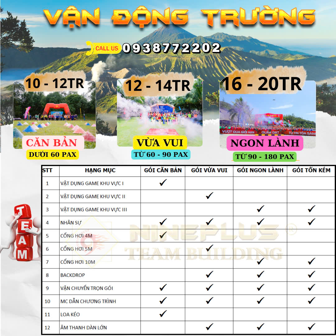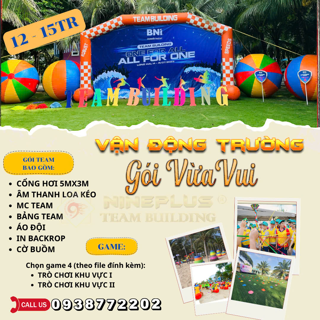 Trong hành trình phát triển doanh nghiệp, một tập thể gắn kết – năng động – đồng lòng luôn là nền tảng vững chắc để bứt phá. Hiểu được điều đó, NinePlus mang đến giải pháp tổ chức gói Team Building chuyên nghiệp, được thiết kế trọn gói từ ý tưởng đến triển khai thực tế, phù hợp với mọi quy mô và mục tiêu doanh nghiệp.