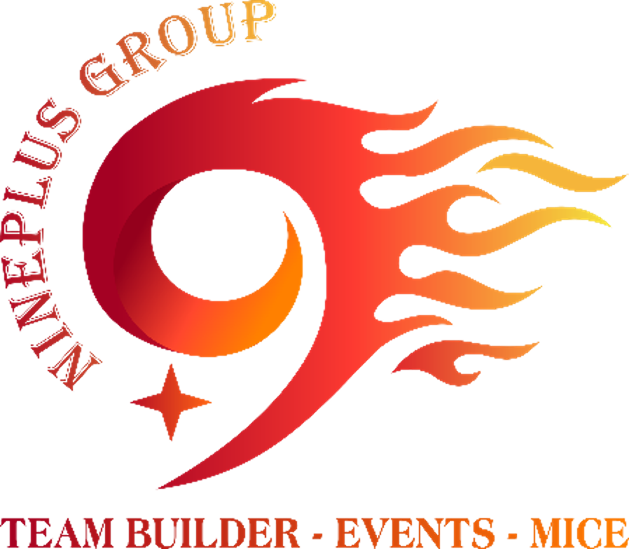 Phần chữ: Dòng chữ gồm “NINEPLUS TEAM BUILDING” được trình bày thành hai hàng, đặt bên phải phần hình, ý nghĩa dòng chữ được lấy từ tên công ty.